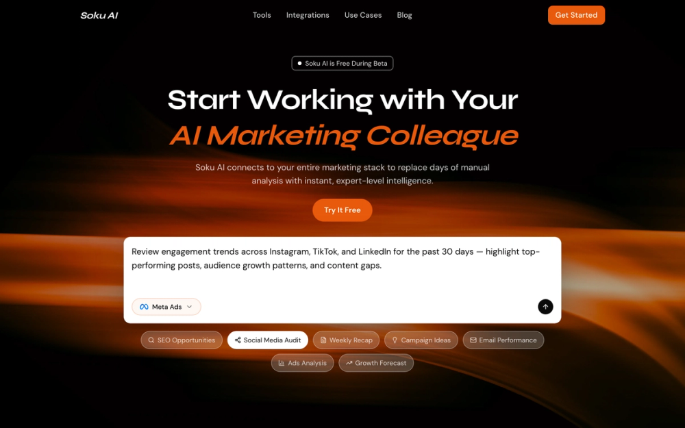 Soku AI is an autonomous marketing agent that runs ads, SEO, social media, and creative production for you — like a digital marketing employee that never sleeps.